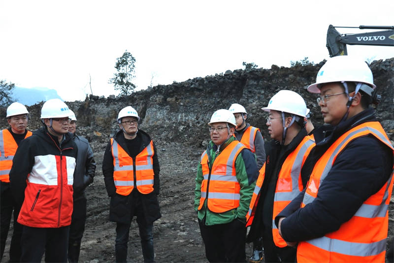 隨后,檢查組乘車前往天全魚泉鄉(xiāng)丹石礦山首采平臺。丹石公司負(fù)責(zé)人匯報(bào),礦山存儲量可供開采十余年,目前已經(jīng)初步解決棄土矛盾,基本可以實(shí)現(xiàn)量產(chǎn)。聽完現(xiàn)場匯報(bào),大家切實(shí)感受到礦山開采工作的艱辛,又為集團(tuán)豐富的“家底”而信心倍增。