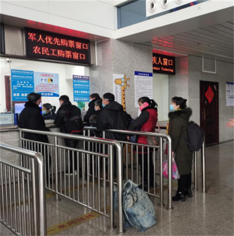 二是設(shè)立專門購票窗口。設(shè)立專門的農(nóng)民工購票窗口,安排車站工作人員在售票窗口引導(dǎo)和幫助農(nóng)民工朋友使用“微信購票”、“自助售票機購票”、“電子客票”等便捷綠色功能購票乘車。