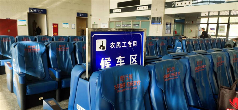 三是設(shè)置專門候車區(qū)。專設(shè)農(nóng)民工候車區(qū),配備軟座,方便農(nóng)民工朋友更好的候車休息,檢票口開通“刷臉驗票”及“人工通道”,安排工作人員引導(dǎo)農(nóng)民工朋友方便、快捷地乘坐客車。