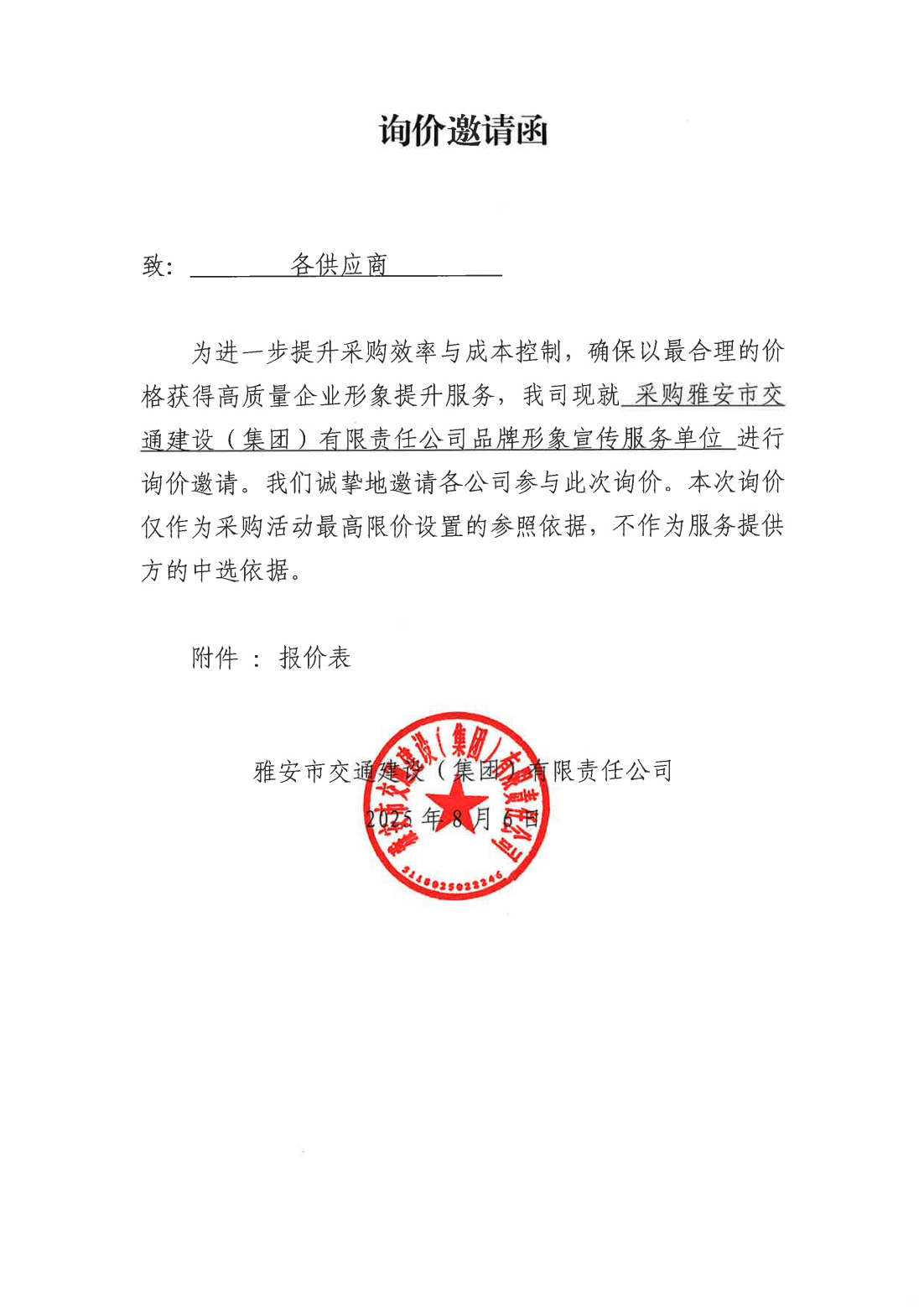 關(guān)于采購(gòu)集團(tuán)品牌形象宣傳服務(wù)單位的詢價(jià)函